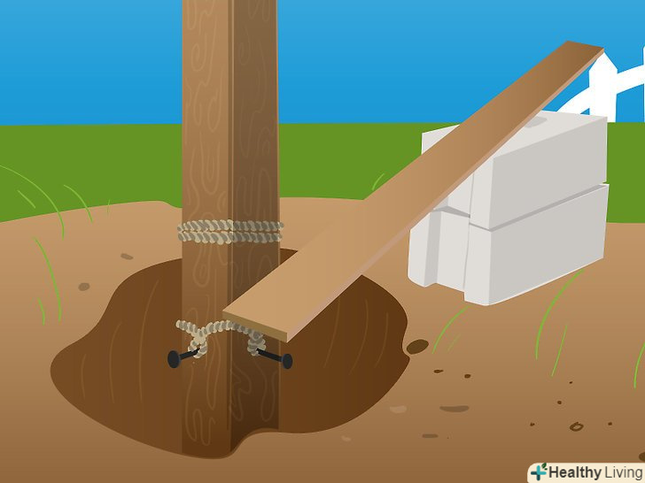 Встаньте на протилежному кінці дошки. ефект буде як у гойдалки, а саме: один кінець рухається до землі, напруга на мотузці збільшується і стовп тягнеться вгору, повільно витягуючи закопану частину.