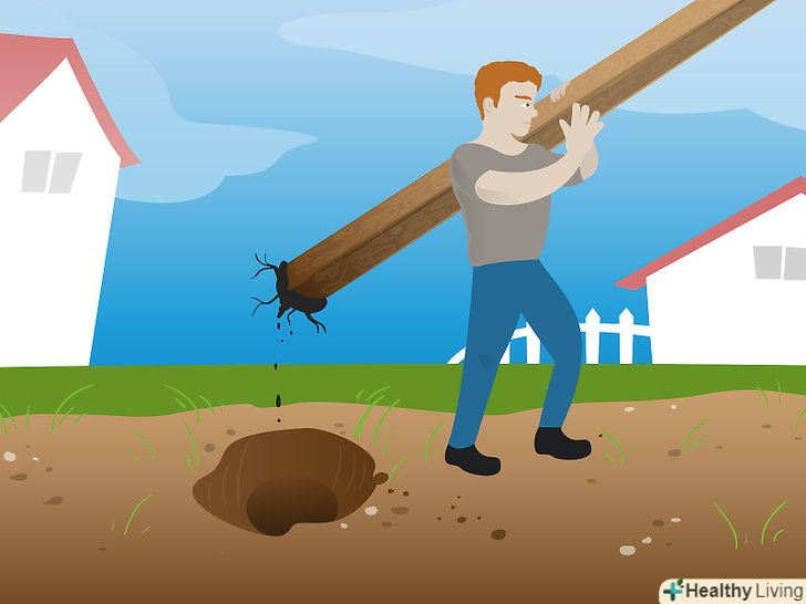 Видаліть стовп з ями. після того, як стовп витягнутий, зніміть мотузку і перемістіть стовп в інше місце.