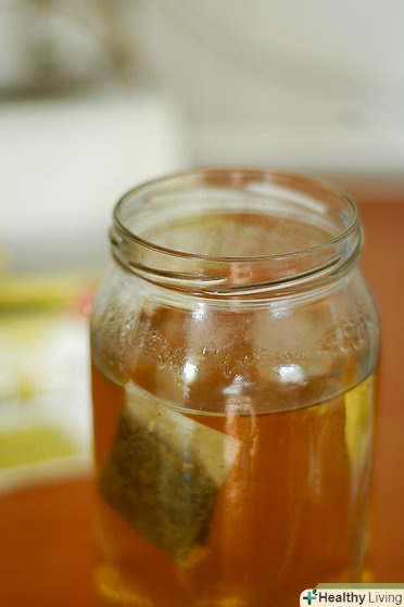 Приготуйте ромашковий чай потрійний фортеці. залийте киплячою водою свіжі або сухі квітки ромашки або чайний пакетик. Щоб приготувати необхідний розчин, на один глечик або банку кошти для обприскування візьміть 1 склянку свіжих квітів або від чверті до половини склянки сухих квітів, і покладіть їх в глечик або банку. Залийте банку або глечик водою.