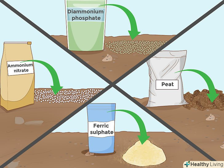 Додайте інші кислі добавки. крім добавок, перерахованих вище, існує ще безліч інших речовин, які продаються як окремо, так і в складі комплексних добрив. Кількість добрив і час їх внесення дуже сильно залежать від виду добрива, тому уважно читайте інструкції на упаковці продукту або запитаєте поради у консультанта в магазині для садівників. Ось деякі добавки, які можуть знизити рівень рН вашої грунту: [13]- Гідрофосфат амонію