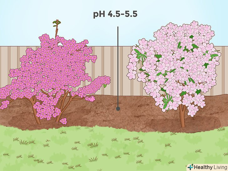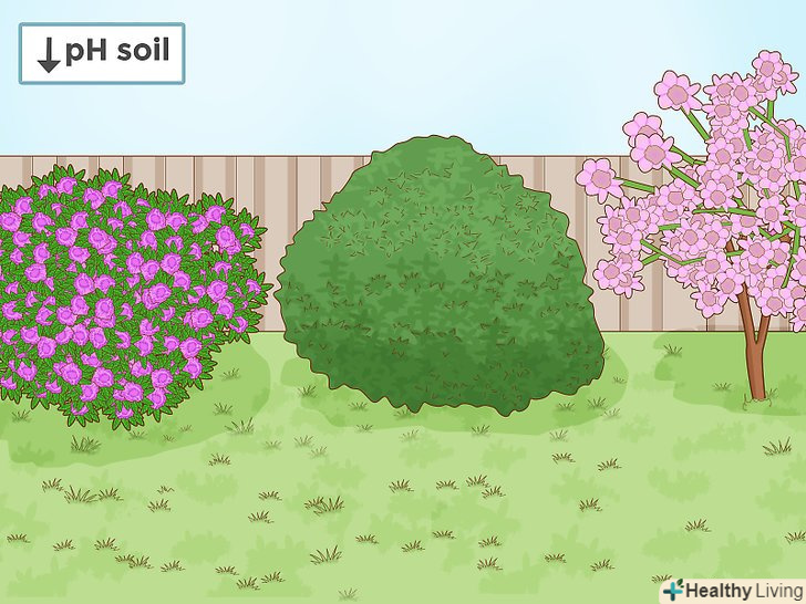 Знижуйте грунтовий рН для таких чагарників, як рододендрон або азалія. деяким видам квітучих чагарників, таким як рододендрон і азалія, потрібно досить кислий грунт, щоб добре рости. Ці рослини ведуть своє походження з районів, де випадає багато дощів (наприклад, Північно-Західний Тихоокеанський регіон США), а велика кількість опадів сприяє підкисленню грунту. [15] для цих видів рослин оптимальне значення рН варіює від 4,5 до 5,5. Однак вони можуть рости на грунтах, рН яких досягає 6.0. [16]