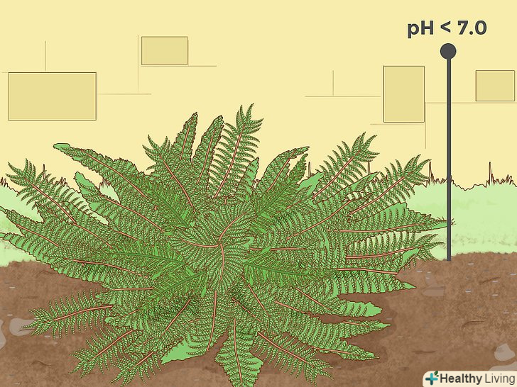 Для папоротей потрібно знизити кислотність грунту лише злегка нижче нейтрального. більшість різновидів садових папоротей віддає перевагу грунтам, де рН трохи нижче 7,0. Навіть ті з них, що вважає за краще лужні грунти, можуть непогано переносити слабокислі субстрати. Наприклад, адіантум, який віддає перевагу грунту з рН 7,0-8,0, може досить непогано себе почувати при рН, Рівному 6,0. [21] деякі папороті можуть переносити навіть кислі грунти, де рівень рН дорівнює 4,0. [22]