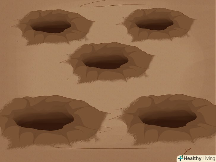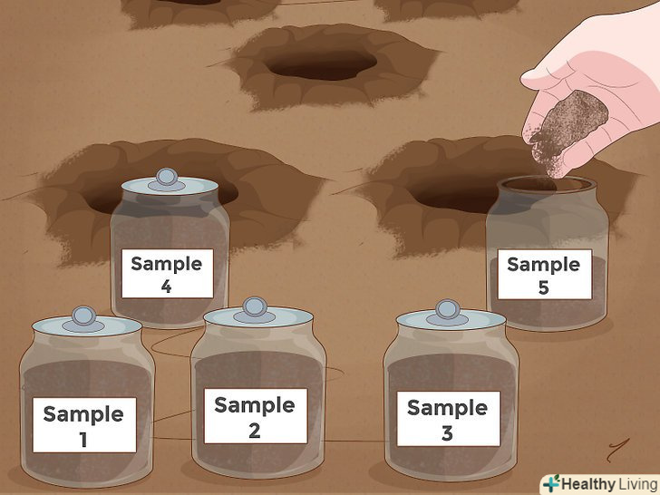 Викопайте на ділянці 5 невеликих ямок. найпростіше визначити рН грунту вашої ділянки за допомогою спеціального набору для визначення рН. Такі набори зазвичай недорогі і продаються в багатьох господарських магазинах і магазинах товарів для садівників. Почніть з того, що візьміть зразки грунту з ділянки, де ви хочете перевірити рН. Викопайте п'ять невеликих ямок, глибиною 15-20 см.розташування ямок має бути випадковим в межах ділянки – так ви отримаєте "середнє" значення рН вашої грунту. [3] грунт, яку ви дістали з ямок, вам зараз не знадобиться.- Зверніть увагу, що в цьому розділі ми наводимо тільки самі загальні інструкції – вам потрібно буде слідувати тій інструкції, яка прикладена до вашого набору для визначення рН.