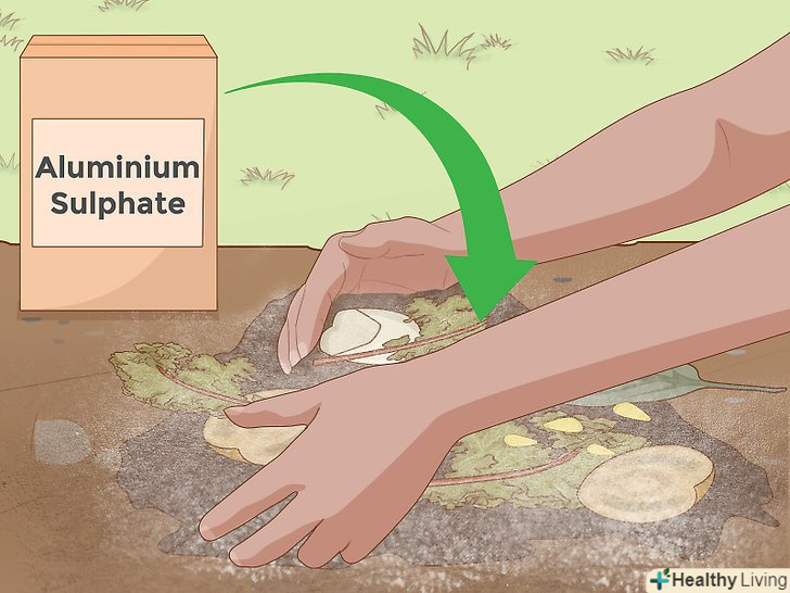 Додайте сульфат алюмінію. для того щоб швидко знизити рН грунту не обов'язково покладатися на поступове, повільне розкладання органічного субстрату. Навпаки, в будь-якому магазині для садівників ви можете знайти широкий вибір добавок, швидко підкислюють грунт. Серед цих добавок ви можете вибрати сульфат алюмінію - одне з найбільш швидкодіючих речовин. Сульфат алюмінію виділяє кислоту в грунт у міру розчинення, що в рамках садівництва, означає, що він працює практично миттєво. [8] тому саме сульфат алюмінію допоможе вам, якщо потрібно швидко знизити рН грунту у вашому саду.- Залежно від початкового рН вашої грунту, кількість сульфату алюмінію, яке вам знадобиться використовувати, варіює в значних межах. В дуже приблизними підрахунками, ви повинні розрахувати, що для того, щоб знизити рН на одиницю (тобто з 7 до 6, з 6 до 5) на ділянці землі розміром 1 квадратний метр вам знадобиться 550 грамів сульфату алюмінію. [9] однак якщо ви додасте занадто багато сульфату алюмінію, це може завдати шкоди вашим посадкам, тому проконсультуйтеся на відповідних інтернет-сайтах (наприклад, тут ) для більш докладної інформації.