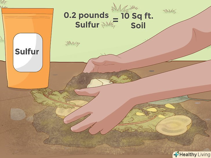 Додайте сірку. інша речовина, яку додають в грунт для зниження рН - це сублімована сірка. Якщо порівнювати цю добавку з сульфатом алюмінію, то вона трохи дешевше, її потрібно менше на одиницю площі, але діє вона трохи повільніше. Оскільки сірка повинна бути засвоєна грунтовими бактеріями, які потім перетворять її в сірчану кислоту, цей процес вимагає деякого часу. [10] залежно від вологості грунту, кількості бактерій і температури, може знадобитися до декількох місяців, щоб сірка почала надавати виражений ефект на кислотність грунту.- Як зазначалося вище, на відміну від сульфату алюмінію, вам зазвичай потрібна відносно невелика кількість чистої, сублімованої сірки, щоб домогтися еквівалентного зміни рН. В середньому, для того, щоб знизити на одиницю значення рН на ділянці грунту розміром 1 квадратний метр, вам буде потрібно 90 грамів сірки. [11] проконсультуйтеся на спеціальному вебсайті (наприклад, тут ) для більш докладної інформації щодо використання.