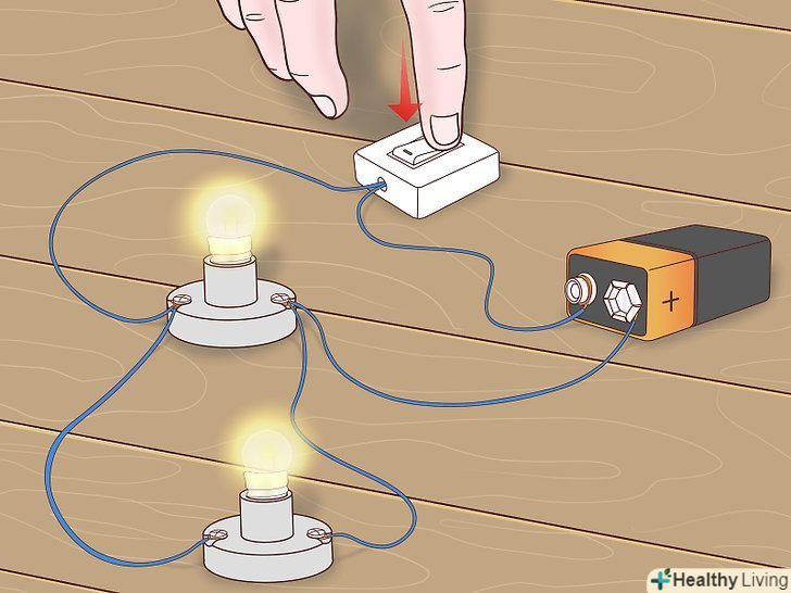 Увімкніть вимикач. Увімкніть вимикач, і ви побачите, що обидві лампочки почнуть світитися. Вітаємо, ви успішно створили паралельний електричний ланцюг!