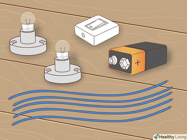 Зберіть все необхідне для створення паралельної електричного кола. буде потрібно небагато: джерело живлення, дроти, як мінімум, два пристрої (споживають електрику) і вимикач.- Ми рекомендуємо використовувати в якості джерела живлення батарею. Вам відмінно підійде дев'ятивольтова батарея.