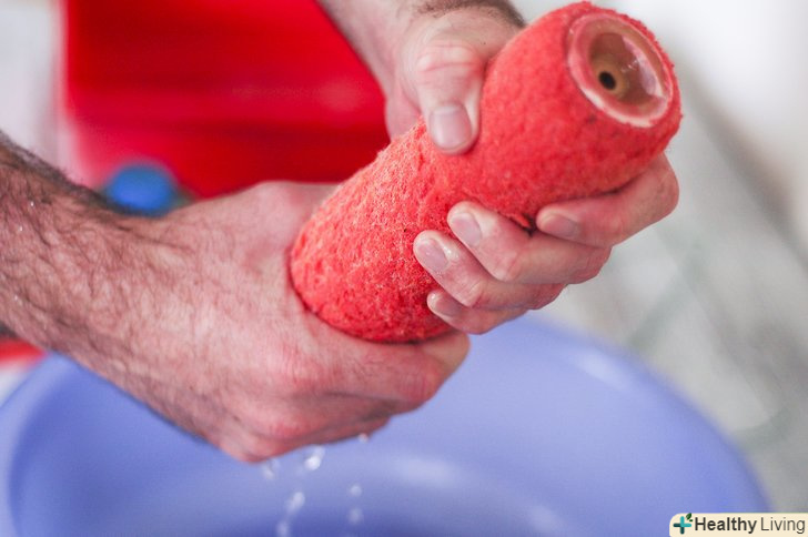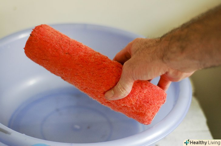 Вийміть валик з трубки і занурте його в миюче відро. вичищайте валик руками в мильній воді, поки не видалите всю фарбу.