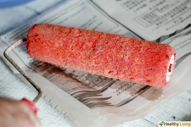 Видаліть стільки зайвої фарби з ролика, наскільки це можливо, пропустивши ролик на непомітній ділянці стіни або по товстому шару газети.- Якщо на валику висохла фарба, то зніміть її скребком.