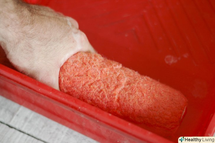Обертайте валик на трубці, поки він не стане злегка вологим. оскільки під час цього процесу фарба може потрапити вам в очі, рекомендується одягнути окуляри.