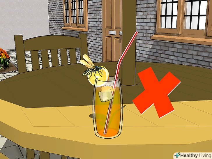 Тримайте джерела їжі, особливо білки, в закритому приміщенні. Хижі оси харчуються переважно білками, тому насолоджуйтеся бутербродом з індичкою в приміщенні, а на вулицю виходьте після прийому їжі, а не навпаки.- Джерела їжі включають і їжу вашого вихованця. Якщо їжа вашого вихованця зберігається на вулиці, робіть це ефективно, щоб хижі оси не поділяли його трапезу.