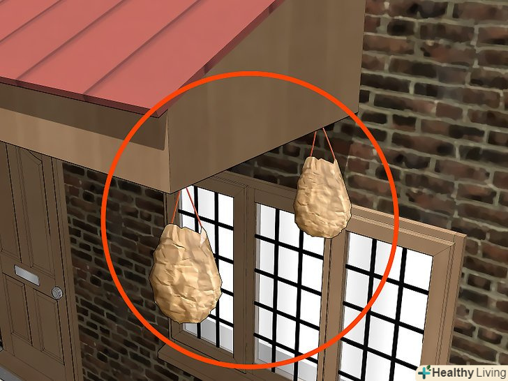 Повісьте зім'ятий коричневий паперовий пакет. оси розташовуються територіально, тому не будуть робити гніздо там, де вже хто-небудь живе. Щоб створити ілюзію осиного гнізда, Зімніть паперовий пакет і підвісьте на мотузці неподалік від дверей. Вони не зможуть визначити, чи дійсно це гніздо, але оси вірять тому, що бачать. Їх інстинкти проженуть їх геть.