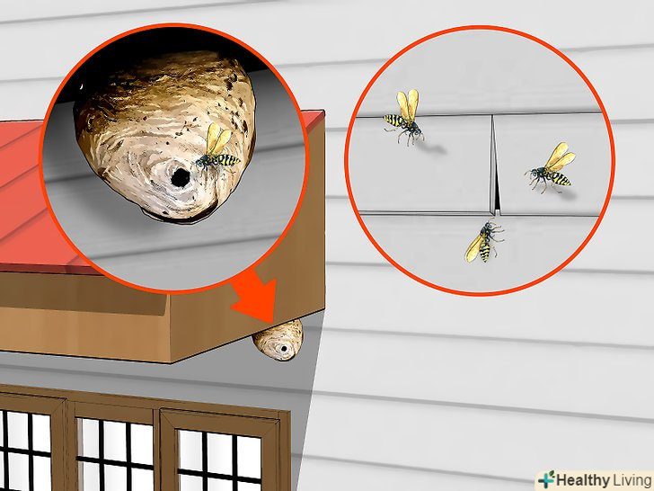 Закріпіть стіни будинку та навіси. саме в навісах люблять селитися оси. Ущільніть ці місця, щоб перешкоджати поселенню хижих ос, в буквальному сенсі, у вас вдома.- Якщо хижі оси оселяться у вас вдома, вам буде потрібна допомога професіонала, і це буде досить дорого коштувати. Якщо ви терплячі, почекайте зими. Сильний холод вб'є всю колонію, а ви зможете після цього видалити осине гніздо і запечатати всі щілини.