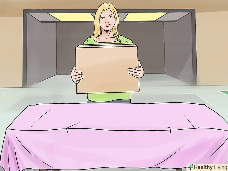 - Якщо буде використовуватися домашні меблі, то слід переконатися, що її не вважатимуть за товар на продаж. Накрийте столи скатертинами або тканиною, щоб приховати зовнішній вигляд і залишити лише місце для товарів.