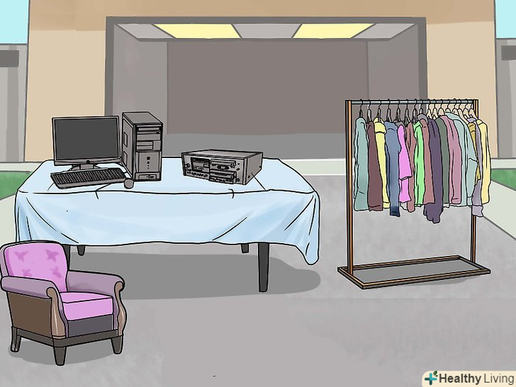 Виберіть місце для розпродажу. якщо в розпродажі берете участь тільки ви, з місцем все цілком очевидно: організуйте розпродаж у дворі перед будинком, на під'їзній дорозі або у відкритому гаражі.- Глобальні та благодійні розпродажі слід проводити в такому місці, де помістяться всі учасники і яке легко знайти покупцям. Зазвичай такі розпродажі проводяться в парках і на стоянках. [3]