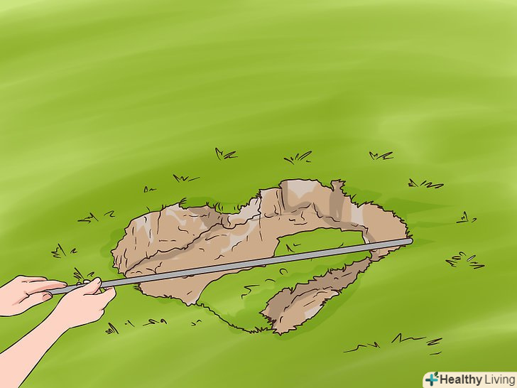 Визначте розмір і глибину воронки. домовласники можуть заповнити лише відносно невеликі і неглибокі карстові воронки. Візьміть кілок або палицю (підійде навіть гілка) і промацайте дно воронки. Визначте її глибину і ширину. [3]- Не наближайтеся до краю карстової воронки без крайньої потреби! Земля в цьому місці дуже нестабільна і може обвалитися прямо у вас під ногами.