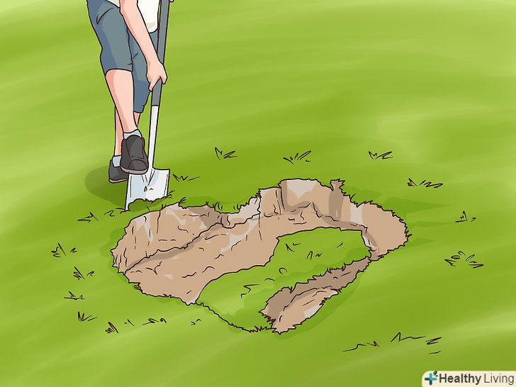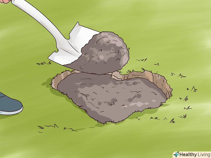 Прокопайте зовнішній край воронки. під землею карстова воронка може бути набагато більшою, ніж здається зверху. Щоб визначити справжні розміри карстової воронки, візьміть лопату і розширте її. Приберіть грунт по краю воронки і переконайтеся в міцності навколишнього грунту. Продовжуйте розширювати воронку, поки не дійдете до того місця, де родючий грунт і осадові відкладення будуть лежати на твердій породі. [7]- Також не забудьте прибрати з воронки все сміття: гілки, соснові шишки та інше.