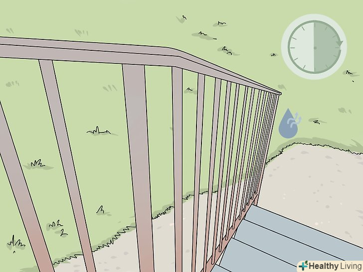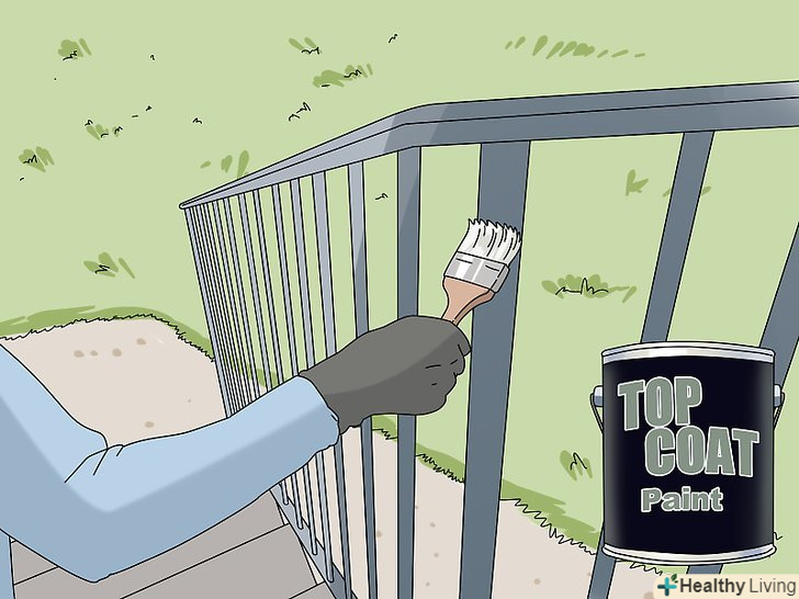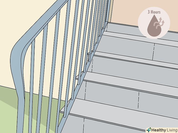 Зачекайте близько 3 годин, поки грунтовка повністю висохне. цей час може залежати від марки грунтовки, тому загляньте в вказівки щодо застосування. Зазвичай грунтовка стає сухою на дотик через 2-4 години. Якщо у вас немає можливості завершити всю роботу за один день, можна залишити ґрунтовку сохнути на ніч, а на наступний день ще раз насухо протерти перила дрантям. [11]- Врахуйте, що на час висихання грунтовки впливає погода. Якщо на вулиці прохолодно або волого, додайте ще хоча б одну годину. Швидше за все грунтовка сохне при температурі вище 21 °C.
