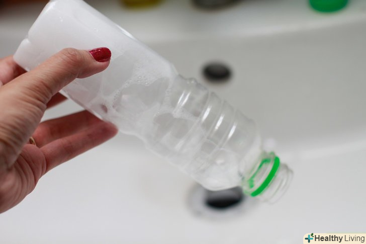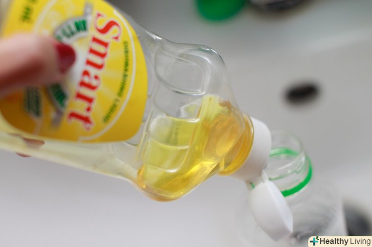 Знову заповніть пляшку наполовину водою і додайте 5 або 6 крапель рідкого засобу для миття посуду.- Закрийте пляшку і добре струсіть кілька разів.