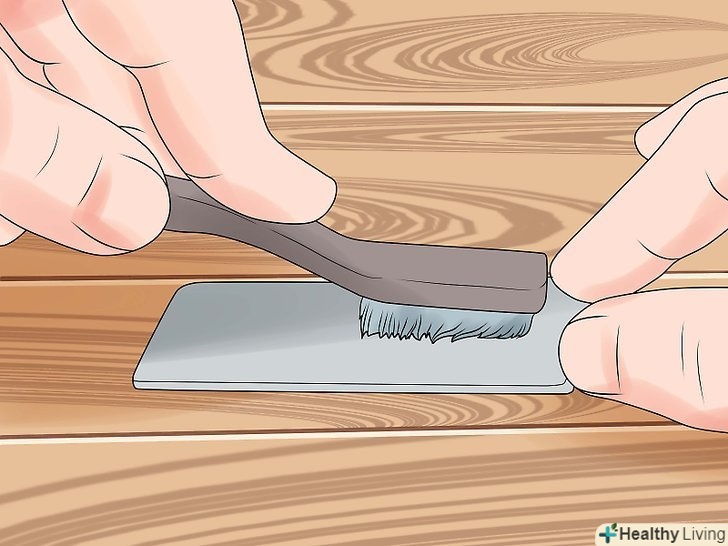 Очистіть алюмінієву поверхню щіткою зі сталевого дроту. на повітрі поверхня алюмінію швидко покривається оксидною плівкою, що перешкоджає міцному з'єднанню при пайку. Протріть поверхню сталевою щіткою, попередньо ознайомившись з інструкцією. Підготуйтеся до того, щоб протерти поверхню, обробити її флюсом і нанести припій досить швидко для того, щоб запобігти утворенню оксидного шару.- Для очищення сильно окисленої або забрудненої поверхні можуть знадобитися шліфування наждачним папером або протирання технічним спиртом або ацетоном.