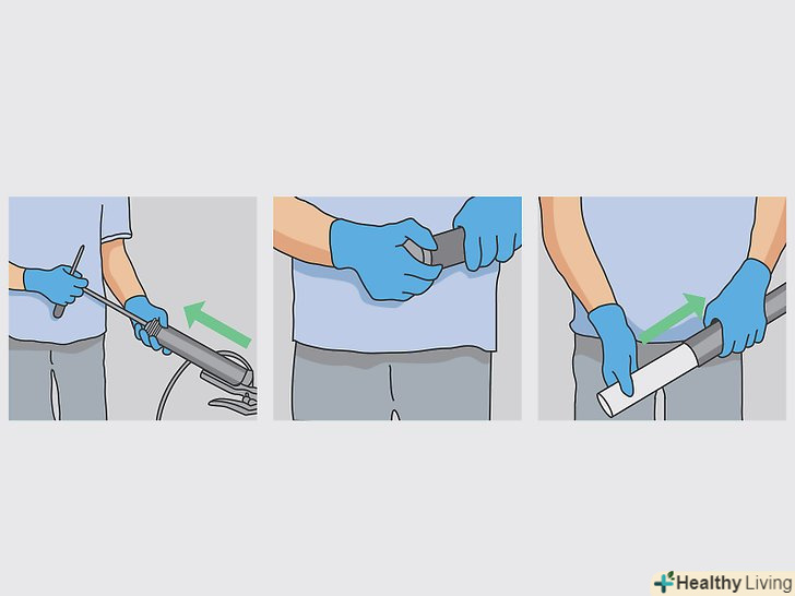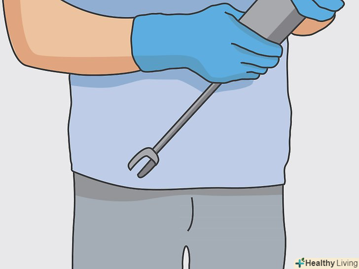 Зафіксуйте шток і витягніть картридж. у більшості мастильних пістолетів, вам потрібно змістити шток трохи в сторону, в спеціальний паз в корпусі, щоб він не міг рухатися вперед. У деяких мастильних пістолетах шток має засувку в повністю втягнутому стані, а в кінці корпусу є звільняє пластина, яка дозволяє штоку знову рухатися.- Коли зафіксуєте шток, ви можете витягнути порожній картридж і викинути його.