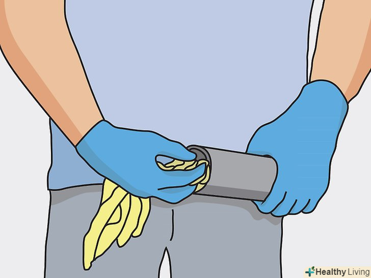 Вийміть шприц з ємності з мастилом. коли шток з поршнем буде повністю витягнутий наверх, вийміть відкритий кінець корпусу з мастила. Поверніть його кілька разів, щоб видалити прилипла мастило. Використовуючи ганчірку, видаліть надлишки мастила з кінця корпусу.