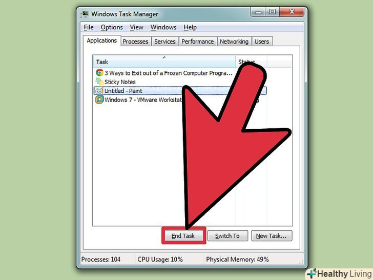 Натисніть "зняти завдання".виділивши завислу програму, натисніть "Зняти задачу" (в правому нижньому кутку вікна диспетчера завдань). У вікні натисніть "закрити програму".