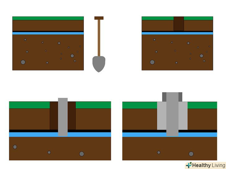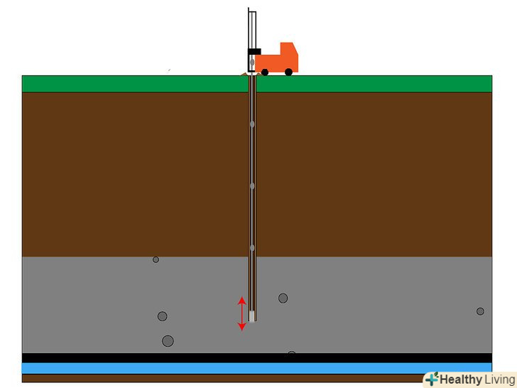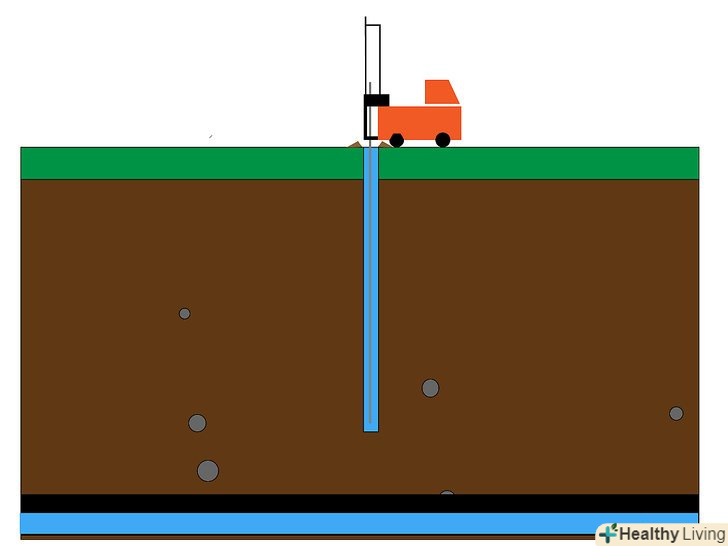 Виберіть відповідний спосіб бурових робіт. більшість свердловин буряться, але свердловину також можна забити, а колодязь - вирити, якщо це дозволяють умови. Буріння свердловин проводиться буром або ротором, ударно-канатним способом або гідродинамічним методом за допомогою високонапірного струменя рідини.- Свердловина або колодязь викопуються, якщо вода знаходиться близько до поверхні і не перекрита твердими породами. Після того, як зроблено поглиблення, в водоносний пласт опускається обсадна труба, а свердловина герметизується щоб уникнути її забруднення. Оскільки вириті колодязі і свердловини менш глибокі, ніж забивні або пробурені, існує ймовірність їх пересихання під час посухи.