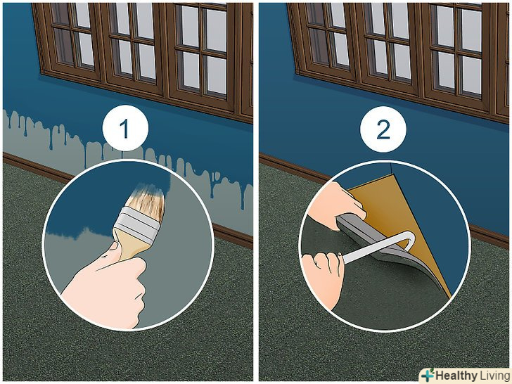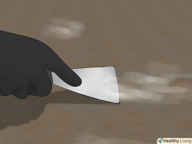 Візьміть необхідні для роботи інструменти. Перед тим, як почати віддирати килим лише за допомогою рук і бажання, краще підготуватися, взявши всі інструменти, які будуть потрібні для вдалої роботи. Серед них немає нічого дорогого, все повинно бути доступно в будь-якому господарському магазині:- Міцні шкіряні рукавички з підкладкою для долоні – дуже важливі для безпеки рук. Ви можете напоротися на гострі цвяхи або кнопки, витягуючи килим, і хороша пара рукавичок також допоможе вам схопити килим. Маска від пилу (респіратор) – теж хороший захист, особливо якщо у вас астма або інші захворювання дихальних шляхів.