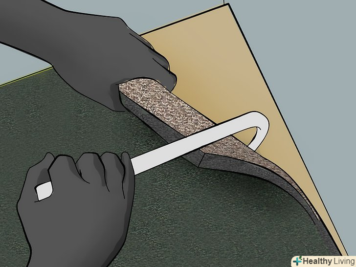 Використовуйте монтування для роботи під килимом. простягніть її від кута вздовж обох країв, щоб полегшити демонтаж покриття. Там, ймовірно, будуть килимові кнопки, які досить липкі, для цього набагато простіше використовувати монтування. Продовжуйте тягнути, використовуючи монтування для відділення килима від підлоги якомога більш рівномірно.- Коли знайдете килимові кнопки/цвяхи, зніміть їх. Пошукайте кнопки, які можуть бути прикріплені до нижньої частини килима. Засуньте монтування під килим, щоб переконатися, що вони відірвані, перш ніж згортати його.