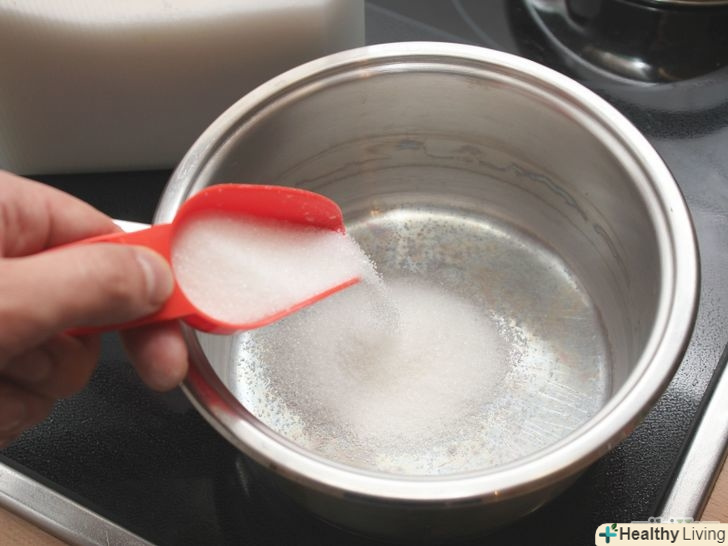 Зробіть суміш з цукру і води. насипте п'ять столових ложок цукру в каструлю. Поставте каструлю на плиту. Розподіліть цукор рівномірно, щоб він повністю покрив дно. [4]- Налийте достатньо води, щоб покрити цукор. Доведіть суміш до кипіння.