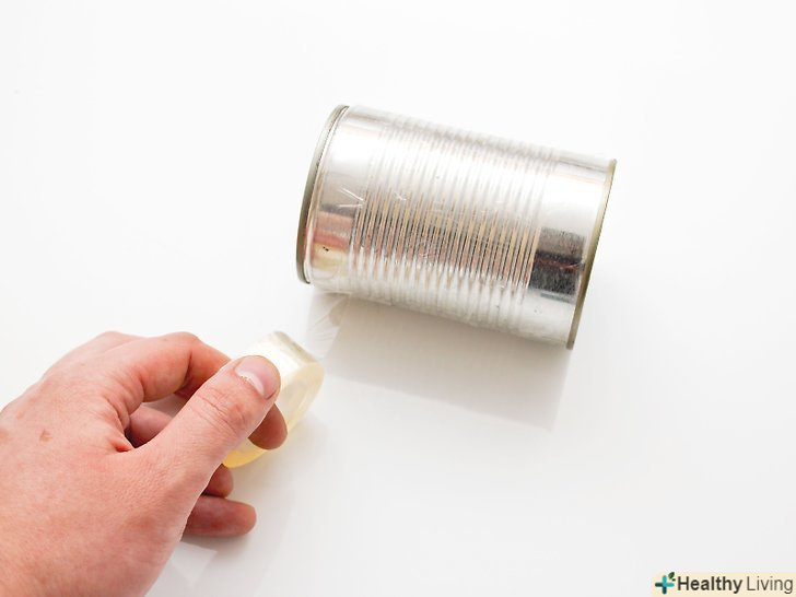 Оберніть банку скотчем або ізоляційною стрічкою. щільно притисніть стрічку до банку пальцями. Злегка потріть її, щоб на банку залишилося більше клею. [6]