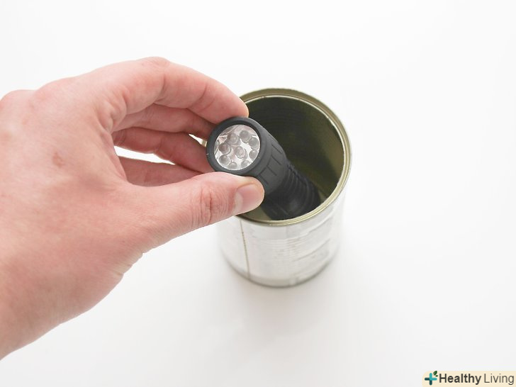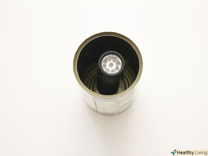 Приклейте невеликий ліхтарик до нижньої сторони кришки. покладіть кришку поверх основи ліхтарика. Це стане дном пастки. Найкраще використовувати ультрафіолетовий ліхтарик, оскільки мух приваблює ультрафіолетове випромінювання. [7]