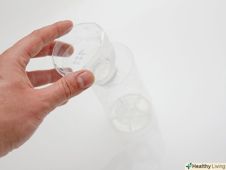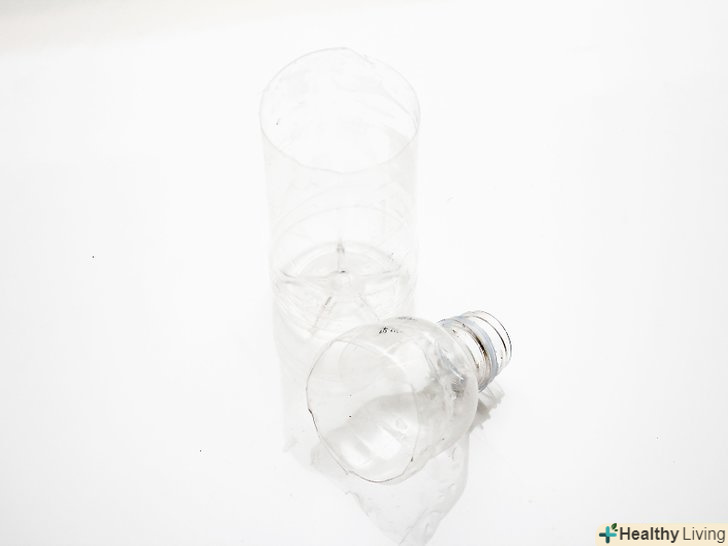 Зріжте верхівку пляшки. для цього вам будуть потрібні ножиці. Проколіть отвір в пляшці вістрям ножиць (ближче до середини). [2]- Проколів отвір, вставте в нього ножиці і розріжте пляшку поперек. Повністю зріжте верхівку, щоб у вас залишилося дві частини — верхівка з кришкою і довга нижня частина.