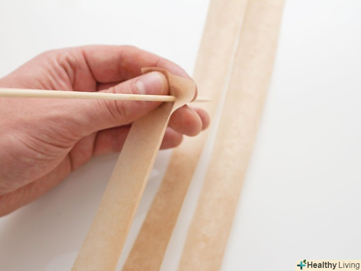 Проколіть в смужках отвори. ножицями або ножем проколіть отвори на відстані 2,5 сантиметрів від кінця стрічки. Виконайте те ж саме з усіма смужками. Можна зробити отвори за допомогою дироколу. [17]