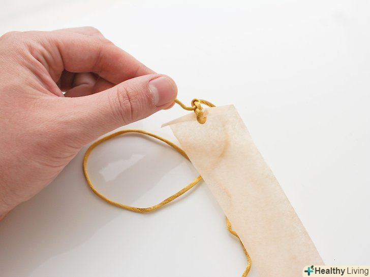 Протягніть в отвір мотузку. відріжте не менше 15 сантиметрів мотузки. Вам буде потрібно по мотузці на кожну стрічку. Протягніть мотузку і зав'яжіть вузол .