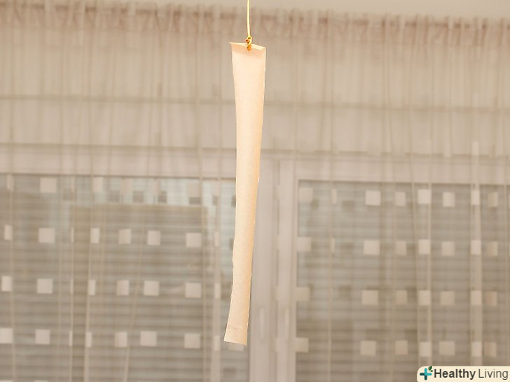 Розвісьте смужки. знайдіть гачок або цвях у стіні і повісьте на нього стрічки. Їх можна повісити в одному місці або розмістити по всьому будинку. Якщо смужки будуть висіти поруч, пастка вийде більш ефективною. [19]