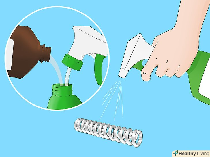 Налийте перекис в пляшку з розпилювачем. за допомогою розпилювача набагато простіше нанести перекис на метал. Обприскати метал значною кількістю пероксиду. Застосування більшої кількості перекису прискорить процес іржавіння. [3]