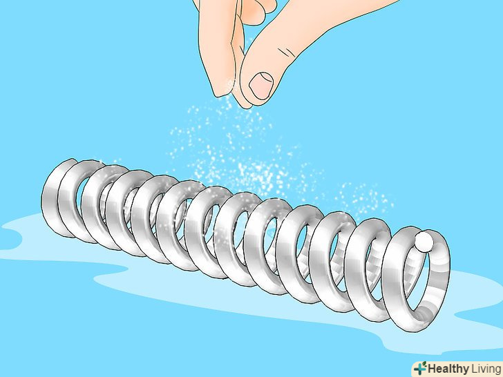 Розчиніть невелику кількість міді в соляній кислоті. розчинивши мідь в кислоті, Ви отримаєте розчин, який прискорить процес іржавіння. Найлегше розчинити мідь в кислоті, звернувши короткий відрізок мідного дроту в котушку і зануривши його в кислоту на період близько одного тижня.- Коли ви занурили мідь в кислоту, не закривайте пляшку щільно. Гази, що виділяються в ході хімічної реакції, створюють тиск всередині пляшки. Крім того, переконайтеся, що чітко позначили пляшку і зберігайте її в недоступному для дітей і домашніх тварин місці.