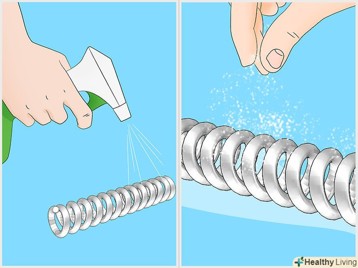 Посипте метал сіллю. потрібно робити це в той час, коли перекис ще волога. Процес іржавіння почнеться майже відразу ж і буде легко помітний. Ви можете використовувати більше або менше солі, залежно від того, наскільки товстий шар іржі хочете отримати. [4]