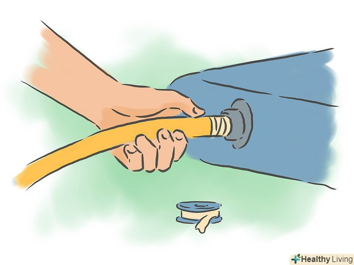 Закрийте кран, не від'єднуйте шланг і заведіть його в кімнату через вікно або двері так, щоб він дотягнувся до клапана на матраці.