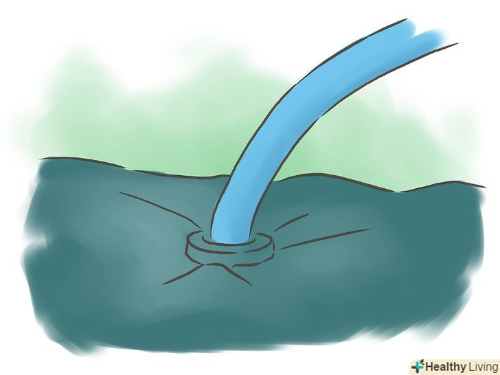 Підключіть перехідник для шланга (він повинен бути в комплекті з матрацом, якщо ні – вам доведеться купити новий) до Вашого поливального шлангу, а іншу сторону шланга підключіть до водопровідного крану. злив води повинен знаходитися нижче, ніж матрац, щоб можна було його правильно злити.