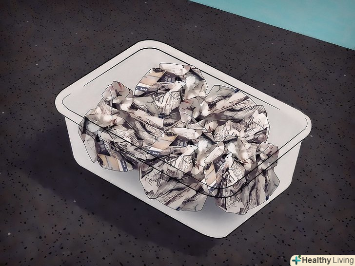 Помістіть зім'яту газету в контейнер. Газета вбере неприємний запах пластикового контейнера. Візьміть кілька аркушів газети, потім порвіть і зім'яти їх. Помістіть листи в контейнер. Папір вбере неприємні запахи, якщо ви залишите її в контейнері протягом 24-48 годин.- Вимийте контейнер після того, як ви приберете з нього газету, так як листи можуть бути брудними.