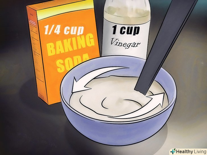 Приготуйте розчин з оцту і харчової соди. якщо вам не вдалося видалити запах за допомогою вищеописаного методу, швидше за все, вам доведеться вдатися до більш сильних засобів. Візьміть велику миску або каструлю і налийте в обрану ємність склянку білого оцту. Потім додайте ¼ склянки харчової соди. Ретельно перемішайте інгредієнти.