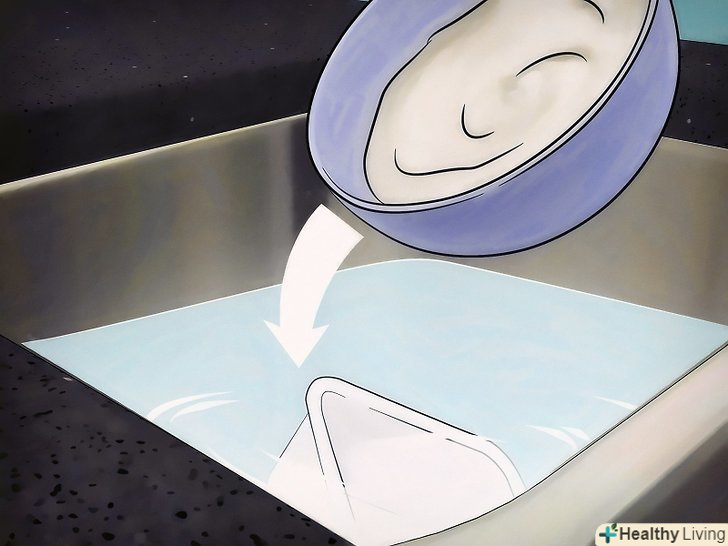 Замочіть контейнер в розчині, що складається з води і засоби для миття посуду. замочування контейнера допомагає позбутися від найстійкіших запахів. Заповніть раковину або велику миску теплою водою і додайте в неї велику кількість засобу для миття посуду. Залиште контейнер у воді на 30 хвилин.- Якщо замочування контейнера у воді не принесе належного результату, візьміть щітку і ретельно вимийте контейнер, поки він ще знаходиться у воді. Засіб для миття посуду, що знаходиться в контейнері, посприяє усуненню неприємного запаху.