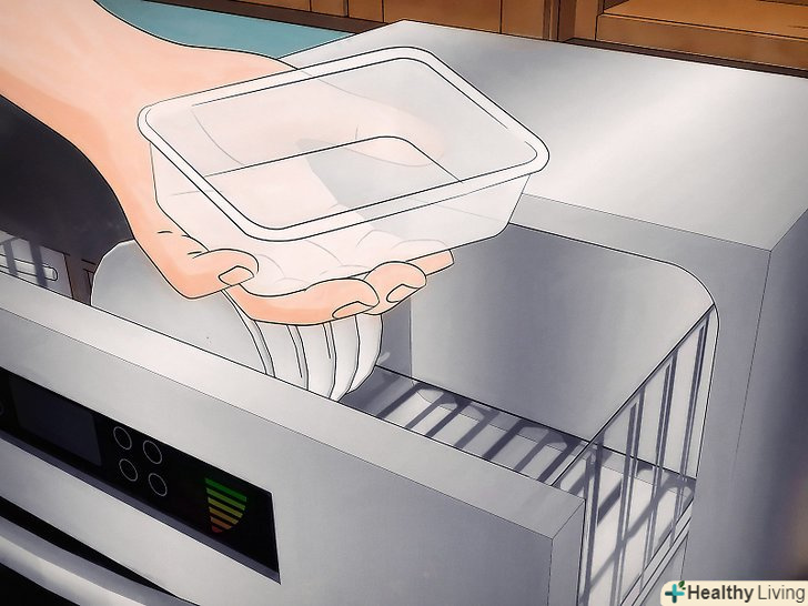 Помістіть контейнер у посудомийну машину. переконайтеся, що ваш пластиковий контейнер можна помістити в посудомийну машину. Помістіть контейнер в посудомийну машину і запустіть цикл миття. Висока температура в посудомийній машині допоможе усунути неприємний запах, від якого не вдалося позбутися за допомогою вищеописаного методу. [2]- Помістіть контейнер на верхню полицю, щоб запобігти його деформації.