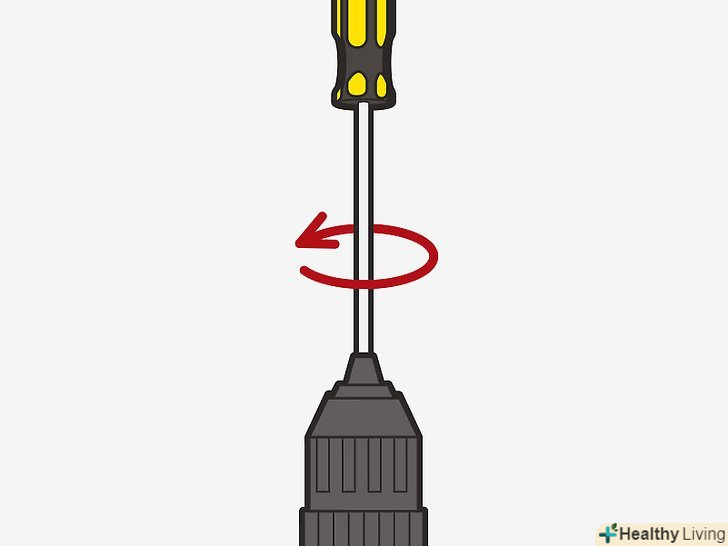 Якщо патрон не крутиться, послабте гвинт, що знаходиться всередині патрона. якщо вручну або за допомогою ключа патрон не крутиться, то потрібно в отвір дрилі вставити викрутку з хрестоподібною головкою і провернути гвинт всередині патрона проти годинникової стрілки. Цих дій повинно бути достатньо, щоб послабити патрон і прокрутити його. Провернувши патрон, замініть свердло. [3]