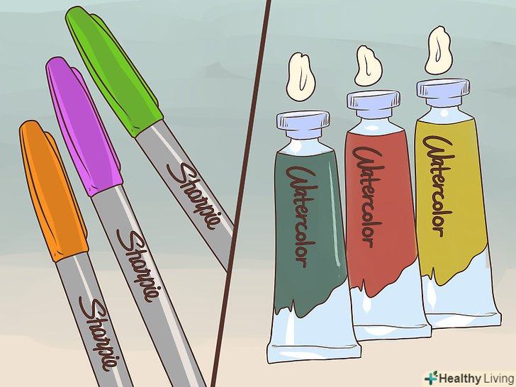 Аксесуари для прикраси. такі кошти необхідні для прикраси виробів. Вам слід придбати кольорові олівці, крейда, маркери і фломастери. Також купіть акрилові, масляні або акварельні фарби, грифельну фарбу, блискітки і кисті. Не забудьте палітру і стаканчик для змішування і нанесення фарб. [12]