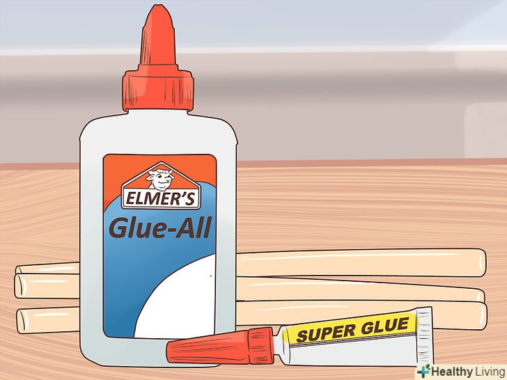 Купіть різні види клеять засобів. Клей, скотч та інші клейкі матеріали завжди знадобляться в творчій справі. Клей для паперу і тканини, універсальний клей для деревини, пластмаси або металу і пістолет для гарячого клею стануть вашими незамінними помічниками. Також купите звичайний і двосторонній скотч, самоклеящуюся і малярську стрічку. [13]- Необов'язково купувати всі види клею і стрічок відразу. Спочатку придбайте найнеобхідніше.