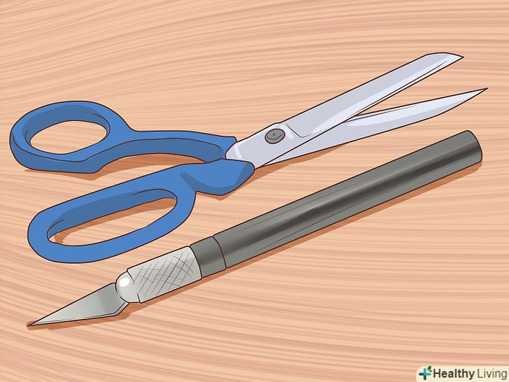 Ріжучі інструменти. у творчій майстерні не обійтися без ріжучих інструментів. Купуйте звичайні гострі ножиці, а ще краще кілька ножиць різних розмірів. Канцелярський або інструментальний ніж знадобляться для проектів, що вимагають високоточних розрізів. [14]- Використовуйте ножиці та ножі разом з дошкою для різання, щоб не пошкодити стіл або підлогу.